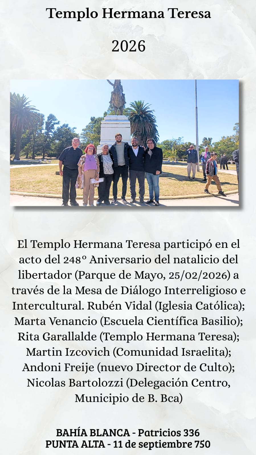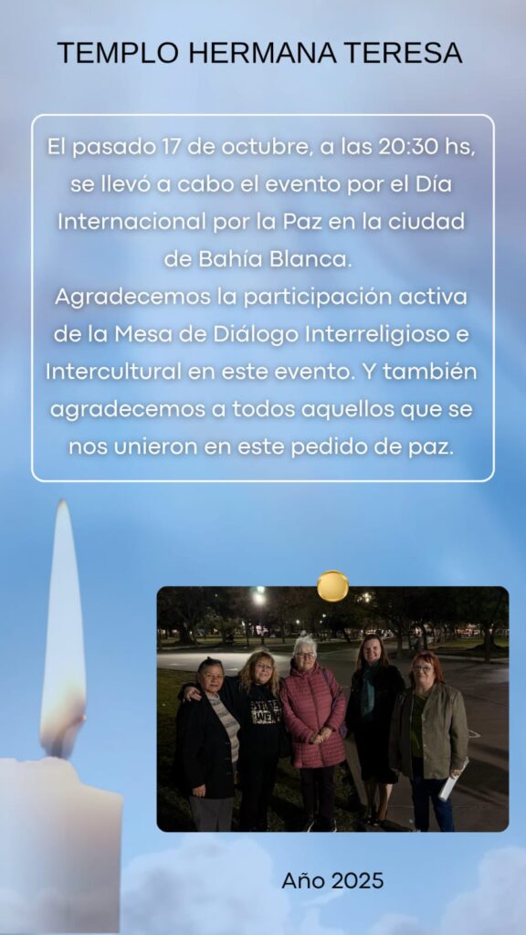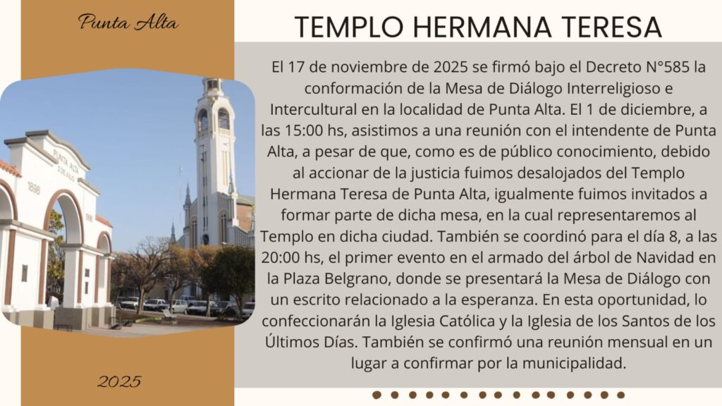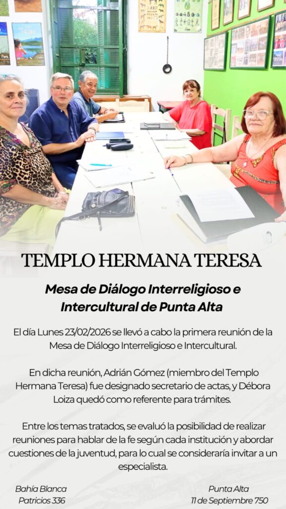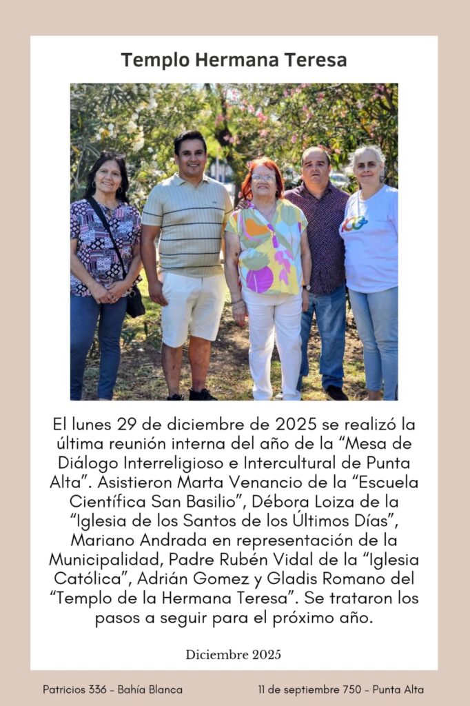 En el mes de febrero, como todos los años, el Templo Hermana Teresa comenzó a asistir a las reuniones que mensualmente se realizan a través de la Mesa de Diálogo Interreligioso y Cultural Bahía Blanca.